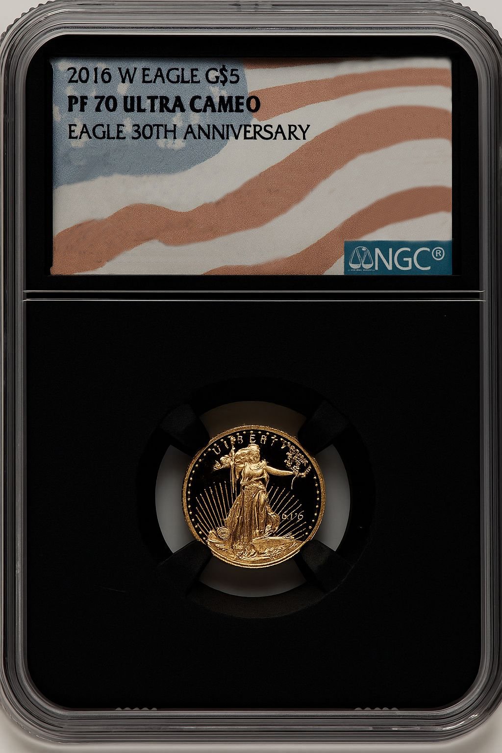 2016-W $5 Tenth-Ounce Gold Eagle – 30th Anniversary, Miles Standish Label (NGC PF70 Ultra Cameo)